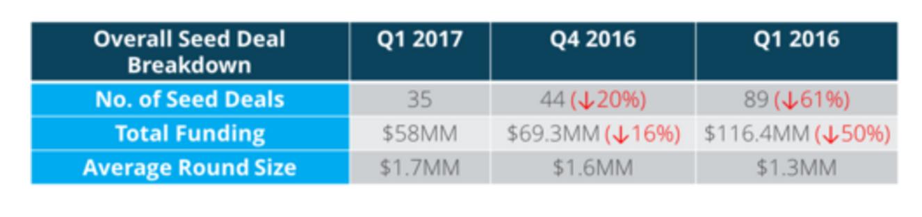 编者按:Primary Ventures发布了2017年第一季度种子投资交易报告,涵盖了美国35个种子交易,共计5800万美元,与第四季度相比下降了16%,同比下降50%,但是平均交易规模持续增长。报告称,“尽管开幕并不顺利,但2017年美国种子投资交易市场拥有乐观的前景”。