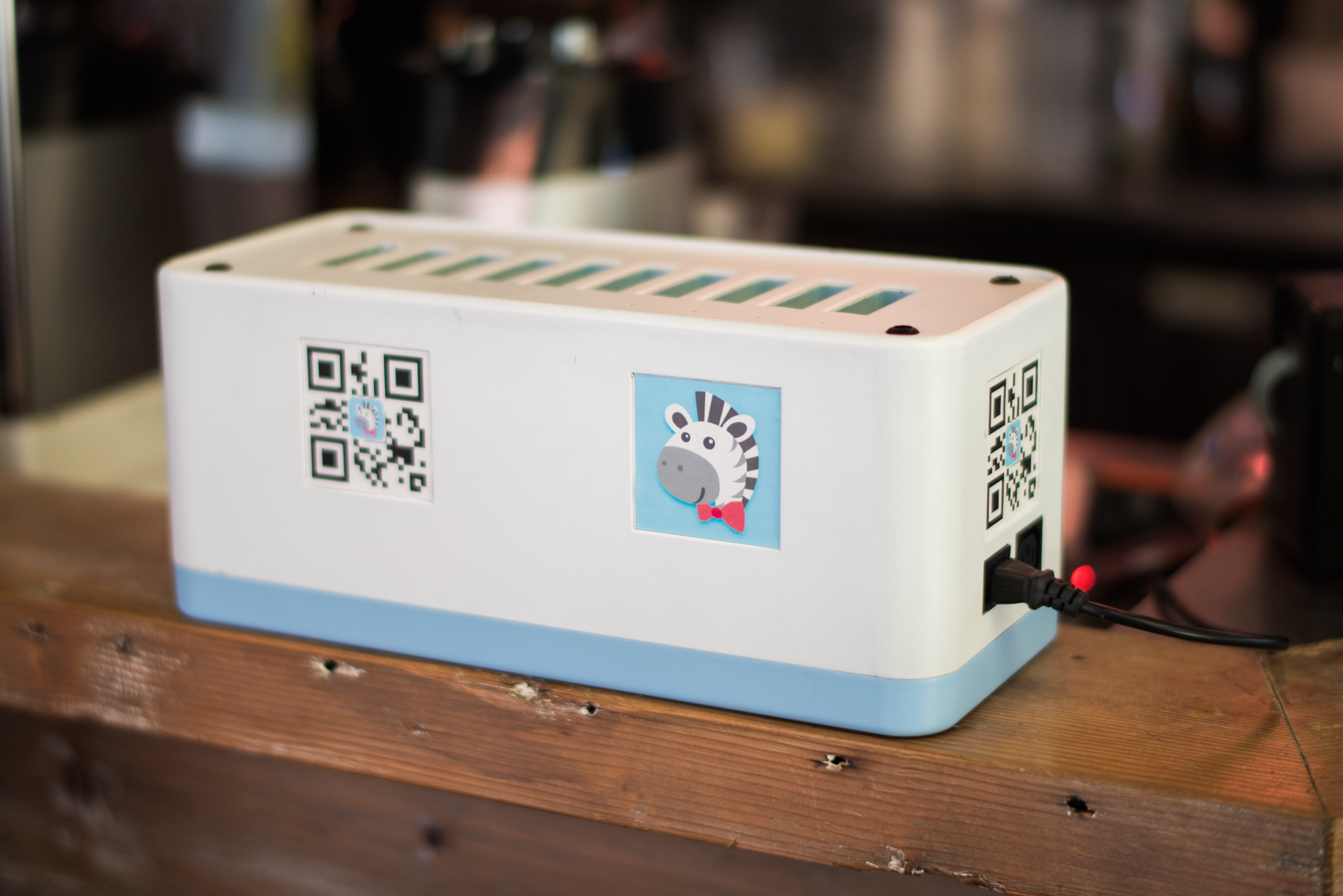 目前小斑充电的一代机柜,可以容纳 10 个充电宝,充电宝自带充电线,支持目前市面上主流的三种接口的充电类型。价格方面,用户需要交纳 99 元的押金,使用时 1 元/小时,每天封顶收费 5 元。