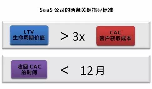 在公司商业模式得到市场验证之后,在公司资金状况允许的范围内,这时就可以猛踩“油门”加速扩张了。这里所说的“商业模式得到验证”是指,数据表明从客户身上获得的营收(LTV)是远大于客户获取成本(CAC)的,通常情况下LTV需要是CAC的3倍之多,且收回CAC的时间要小于12个月。