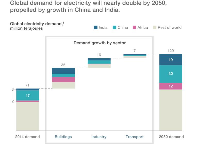 在中国和印度经济发展的推动下,2050年全球的电力需求将增长一倍