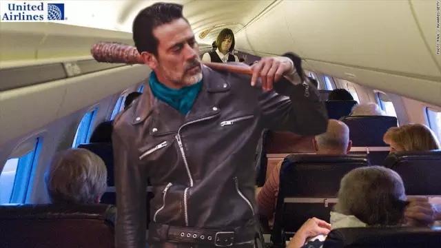 (恶搞图片,《行尸走肉》操狼牙棒的大恶人尼根出现在美联航)