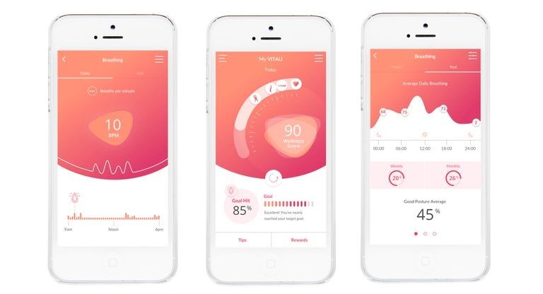 Vitali能实时监测心率变异率(heartrate variability)、姿势和呼吸频率 。其中,心率变异率是反映压力的主要生理指标。