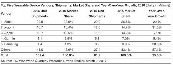 根据美国市场研究公司IDC的最新数据,去年第四季度全球智能穿戴设备出货量为3390万台,较2015年第四季度的2900万台增长16.9%。