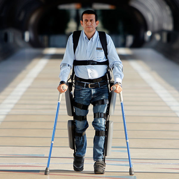 无独有偶,以色列的一家公司ReWalk 开发了一种由电池供电的外骨骼套装。依靠轮椅移动的人穿上这件西装之后可以站起来,甚至走路。