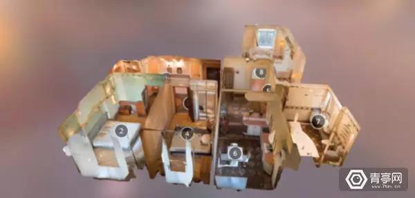 通过这种技术,用户可以实现VR空间探索、无需走到各个房间即可实现公寓各个房间的任意角度参观、以及房间的全景俯瞰。