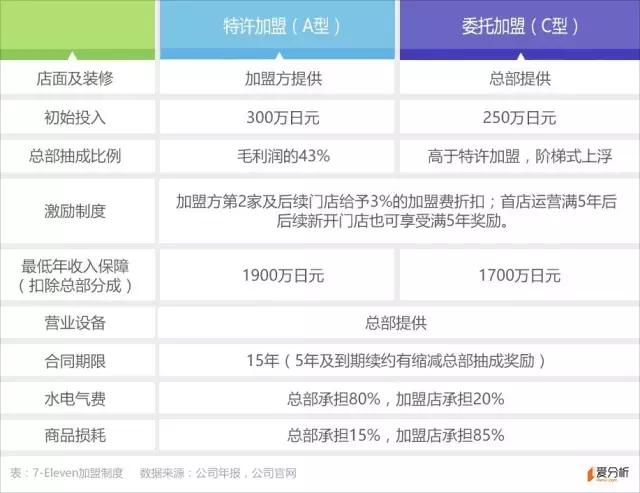 目前,7-Eleven的加盟店以委托加盟模式为主,有13000多家。对于一家典型的委托加盟店,按照32%的平均毛利润,其中总部分成18%左右,并承担房租、部分水电气费和商品损耗成本;加盟店分成14%左右,并承担人工、部分水电气费、大部分商品损耗成本和其他杂费。