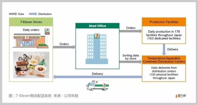 为了运输和加工新鲜蔬菜,7-Eleven还于2005年推出全程冷链运输,建立了9个蔬菜处理中心。7-Eleven在日本的150个地区分布了165个不同温度带的联合配送中心,形成强大的配送网络。