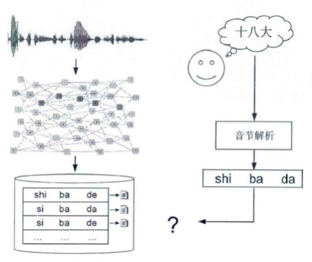 有了检索网络后,接下来的工作就是关键词检索工作。关键词检索是基于音节数据,首先将用户设定的关键词文本解析成音节数据,再从检索网络中找出匹配结果,相比语音识别这种文本结果检索,这种容错性更强,而且关键词检索可以只用在基于CTC,计算量更小,执行效率更高,更适用于海量数据的检索场景。