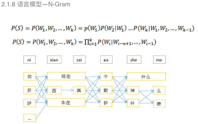基于N-Gram的特点是每个词出现的概率,之和前面第N-1个词有关,整句话出现的概率是每个词出现的概率的乘积。