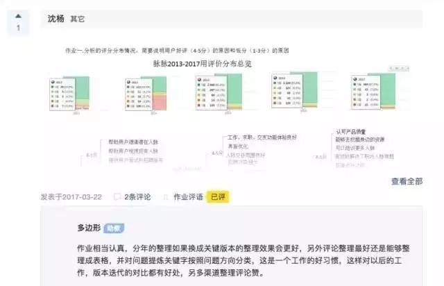 以及,用户完成了作业后,也会得到批改和反馈(注:三节课课程有“自学班”和“魔鬼训练营”两种模式,仅有魔鬼训练营会保证每一份作业必须会得到批改和反馈)。