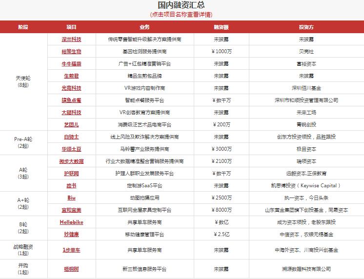 国内投融资精选