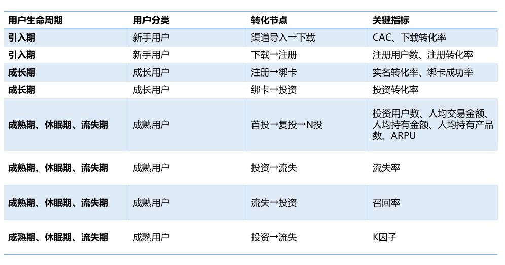 在用户参与度的持续提升、每个节点的持续转化过程中,用户同时完成了在平台内价值的提升和生命周期的一个完整历程(引入期、成长期、成熟期、休眠期、流失期)。