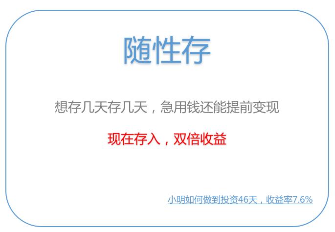 Step4:妮妮在完成支付后,习惯到“我的理财”界面中看看新完成的交易情况。在产品列表中,又在广告区看到了“随性存”的展示,这次她注意到了“小明如何做到投资46天,收益率7.6%”这句话,感到很有意思,于是点击了链接,看到如下图文结合内容: