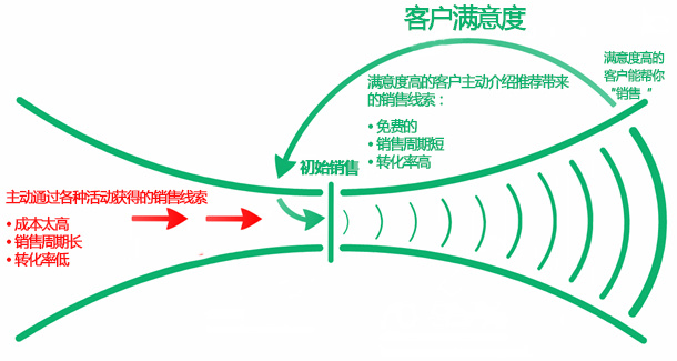 当你在客户成功方面做得比较好时,客户的满意度就高,他们便会主动向别的客户主动推荐你的产品,客户推荐带来的销售线索通常都是一些最优质的销售线索。由客户推荐带来的销售线索和你通过各种活动获得的销售线索有什么区别呢?看完下面这张图你就知道了。