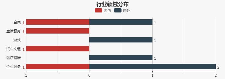 今日国内外共有9起融资事件,分布在6个行业中。国内4个项目获得融资,国外5个项目获得融资。从行业角度来看,国内融资主要分布在金融和生活服务领域(除生产制造外),各为1起融资事件,共占国内总融资笔数的50%;国外融资主要分布在企业服务领域,为2起融资事件,占国外总融资笔数的40%。