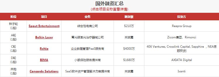 【每日投融资速递】康希诺、冰鉴科技、ABC360、SeatGeek、Reltio、BIMA等25家公司获得融资——2017.4.19