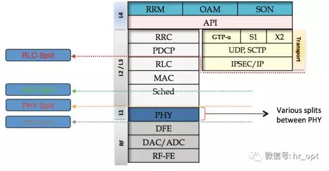 当然,随着流量需求上升,未来5G带宽越来越高,为了降低BBU和RRU之间的CPRI前传负荷,需要对C-RAN构架进行分离。