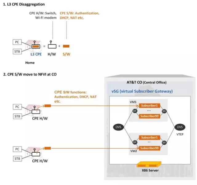 L3 CPE,也叫RG(用户网关),它的一些软件功能将上移到中心机房(现在叫数据中心),也就是说,除了将CPE的硬件部分保留在客户家中,CPE执行的DHCP和NAT等软件功能将转移到中心机房的服务器的VM容器里。