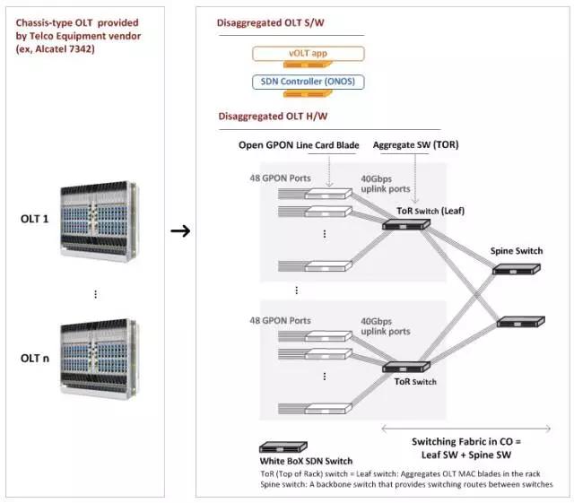 整个OLT解耦过程如下图所示(左边是传统OLT,右边是解耦后):