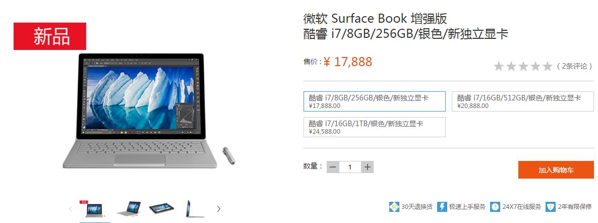 近日,去年与10月与微软首款一体机产品Surface Studio一起发布的Surface Book增强版正式登陆中国市场,起售价格为17888元。