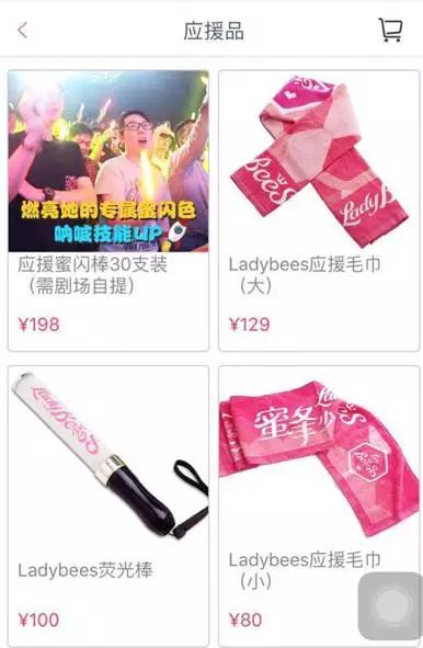 当然,这群忠实粉丝也确实为姑娘们贡献了不少“荷包”,比如他们在现场会买大闪,也就是荧光棒,“在剧场,买大闪就相当于酒吧里面的酒水消费”,专属于蜜蜂少女们的蜜闪棒30支装是198元,如果是ladybees荧光棒则是100块一支,除此之外,还有应援毛巾,大小号分别是129元和80元。