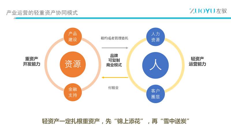 最终,轻资产以人为核心,以重资产为基础,加上资本助力打造出有外延复制能力的运营团队。