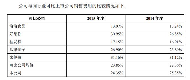 此外,三只松鼠的销售费用占营业收入的比重也高于可比公司平均数值。