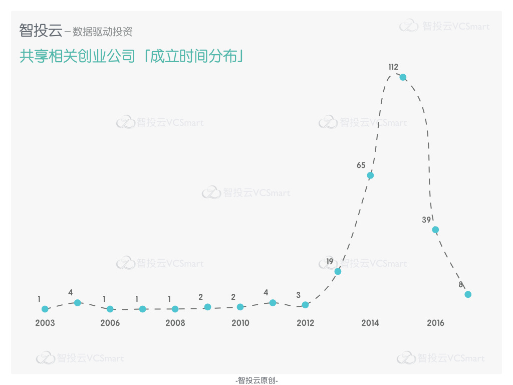 从12年到15年共享经济企业呈现井喷式爆发,涉及到20多个行业。到2016年投资者热情退却,逐步回归理性,少数诸如Uber以及Airbnb等共享经济初创企业逐步发展壮大,走向成功;而更多的同行则走上了下坡路,甚至已经淡出公众视野。