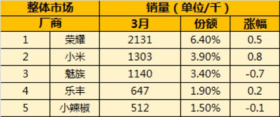 由于一季度情况不佳,小米6和小米5c在二季度的表现非常重要,另一方面,荣耀或许可以稍微松一口气了。