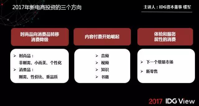 编者按:本文来自“IDG资本”(ID:idg_capital),内容出自 IDG资本董事楼军在「2017 IDG VIEW」的演讲分享以及新电商圆桌探讨。