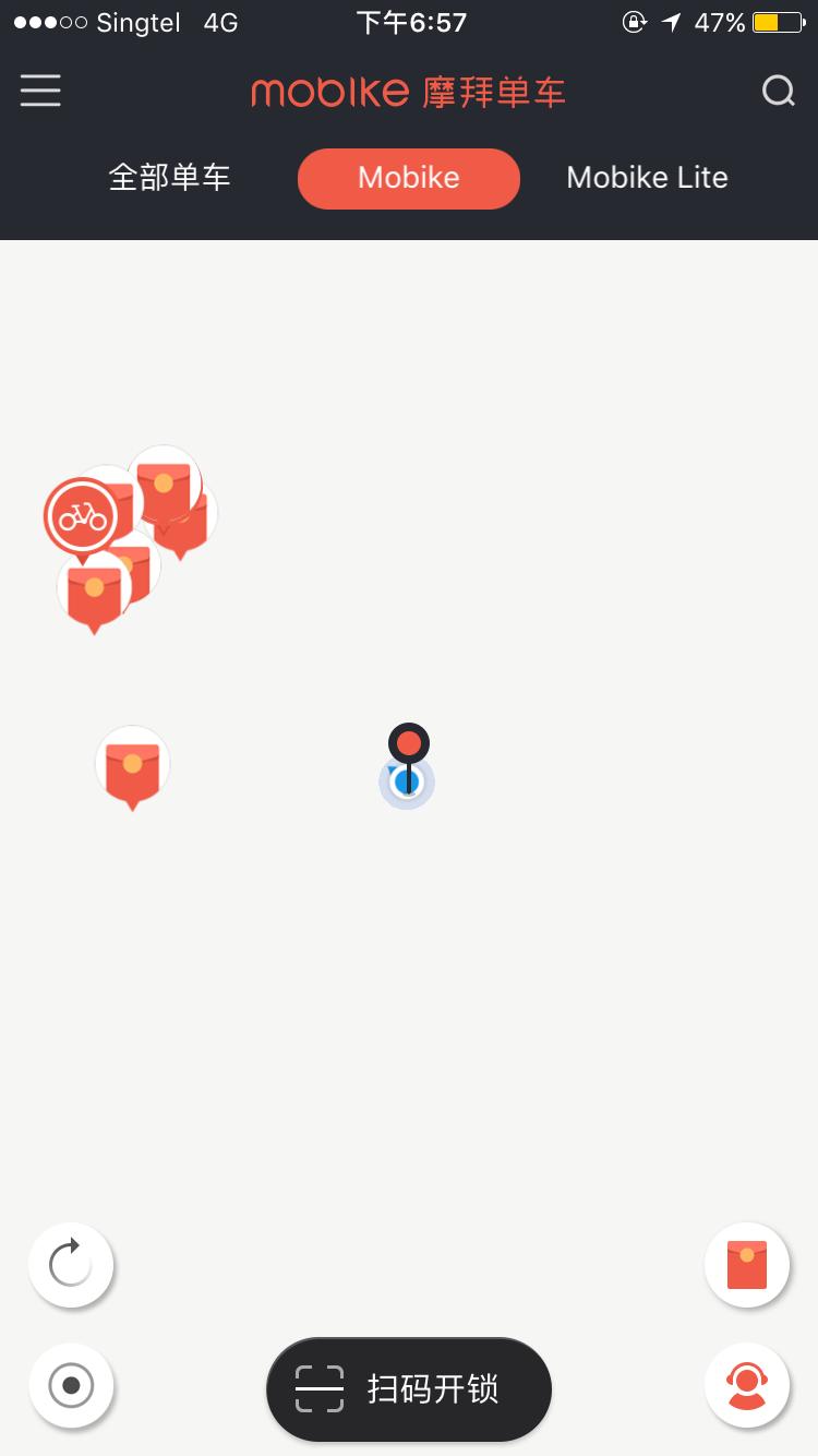 摩拜和ofo均有新加坡本土定制版App