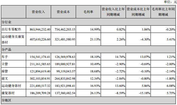 另外,影响利润更大的原因是行业整体的毛利率较低。根据2016年的财报数据,自行车零配件的毛利率为14.99%,同比下降0.20%;而运动健身及康复器材的毛利率为21.13%,同比增长5.41%。