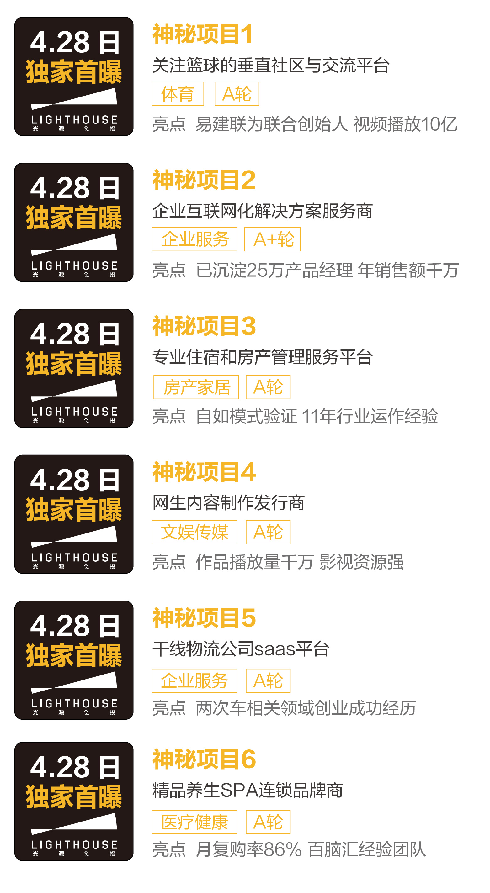 抓住四月份的尾巴,来赏融资季今日专场项目,易建联的创业项目也在哦