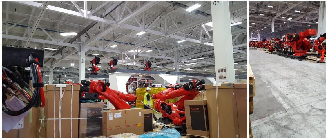 库卡工程师发布的运抵特斯拉工厂的制造机器人