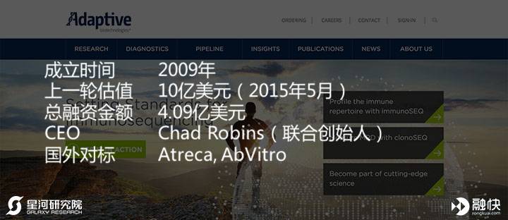 Adaptive Biotechnologies一直走在免疫疾病研究的最前沿,它结合高通量测序和专业的生物信息学来鉴定分析T细胞和B细胞受体,开发了ImmunoSEQ的免疫测定技术平台。现在世界上很多肿瘤学、自身免疫性疾病、基础免疫学等领域的实验室都在使用这个平台,进行关于癌症和其他免疫疾病的突破性研究。
