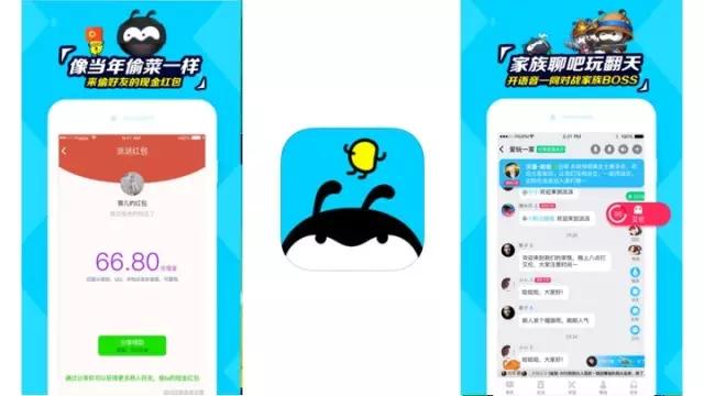 核心玩法:主打有趣的熟人社交游戏,比如“偷红包”可以像以前玩偷菜一样,去偷好友红包并提现;“整蛊熟人”可以抓熟人好友来app上暖床、跳舞或刷马桶;“Q萌宠物”可以在平台上养宠物,并和好友的宠物一起PK。此外,用户可组建家族进行多人语音。