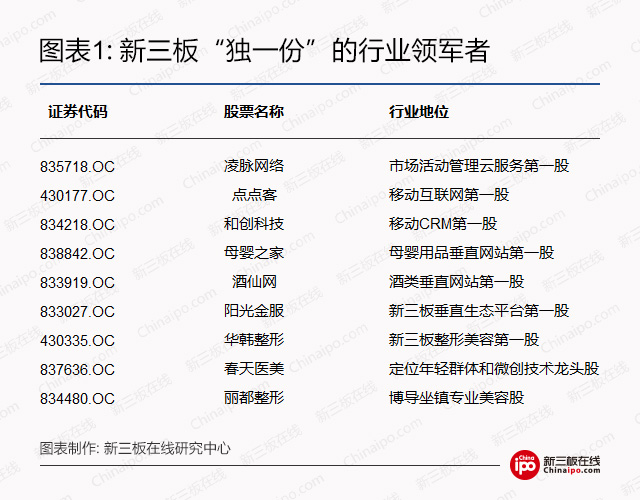 3、新三板中“独一份”的行业及公司:如SAAS、垂直网站、整形医疗。