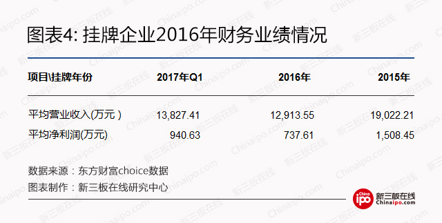 为了便于比较不同挂牌年份企业的财务状况,新三板在线研究中心将已经公布2016年年报的企业分成了三拨,分别是2017年Q1挂牌、2016年挂牌和2015年挂牌三个批次。