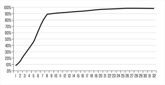 当时,Twitter的主要问题在于用户保留率;注册Twitter的人很多,但很多后来都不怎么登录使用,与此同时,那些小得多的群体反而变得相当活跃。所以,Elman和整个团队开始依据Twitter用户每月登录使用次数,把用户分成不同等级。然后他们得出了一项惊人发现:那些一个月内至少访问7次Twitter的用户下个月的保留率非常高,一般能达到90%-100%。