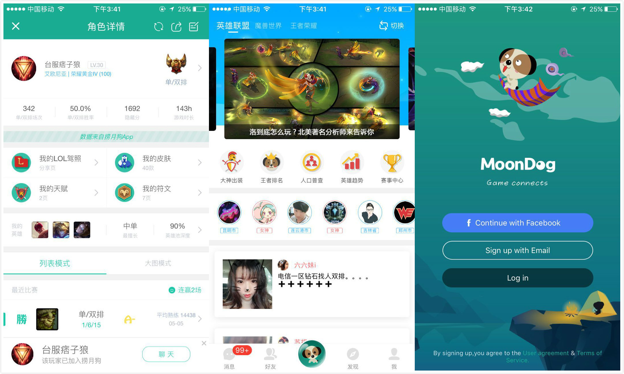 我们曾多次报道过这家游戏社交公司。与伐木累、掌游宝等同类产品的区别在于,捞月狗起初选择从数据单点切入,做主打个人游戏战绩搜索和排名的纯工具性网站,2015年才由数据切入社交范畴。截至目前,团队称产品已有 4500 万国内用户,DAU 300 万,每天新增用户超 10 万,次月留存率 46%;同时,其2016年底上线的海外版本 Moondog 已有 300 万注册用户。