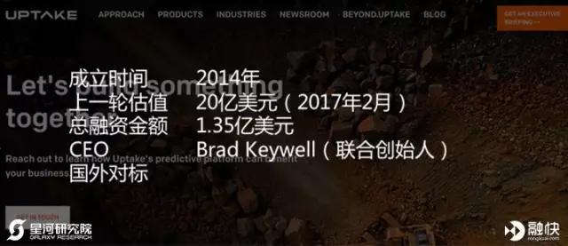 Uptake首先在工业物联网领域提供服务,机械大亨Caterpillar是其种子客户。之后将自己的产品推向其他行业,农业、航空、能源、零售、医疗等行业。推广至其他行业时,Uptake建立一个PaaS平台,与其他企业合作开发上层应用,自身专注于底层数据采集、分析工作,将预测推荐业务交给其他公司开发。