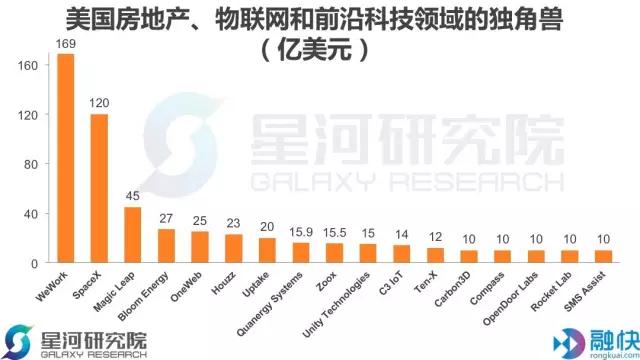 1、WeWork成为估值最高的公司,达169亿美元,在美国独角兽中排名第四位。SpaceX的估值达到了120亿美元,在美国独角兽中排名第五位。