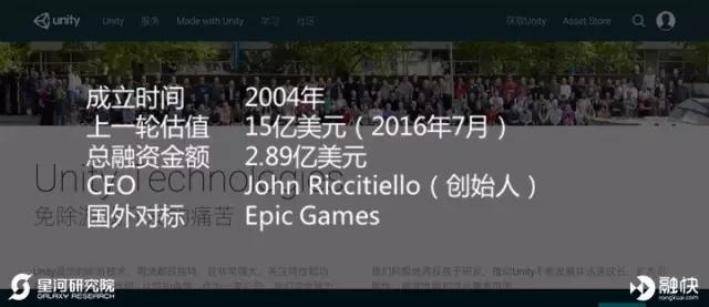 Unity Technologies是一家跨平台的游戏引擎公司,为游戏开发商及个人开发者提供游戏的底层基础运算代码库(例如图像处理和音效处理等),拥有全球最大 2D、3D、VR和 AR游戏体验开发平台。