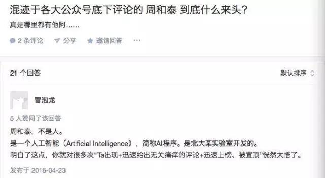 微信公号界一直流传着一个关于“周和泰”的传说——这究竟是人,还是软件程序?为什么微信公号评论区里,到处都有他的身影?难道真有这样的人,整天什么事也不做,只盯着手机看公号文章吗?