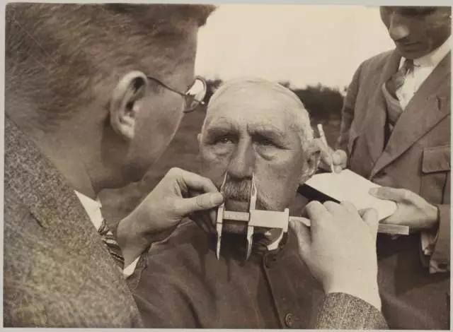 图9 .纳粹“种族科学家”正在做容貌测量,1933年。