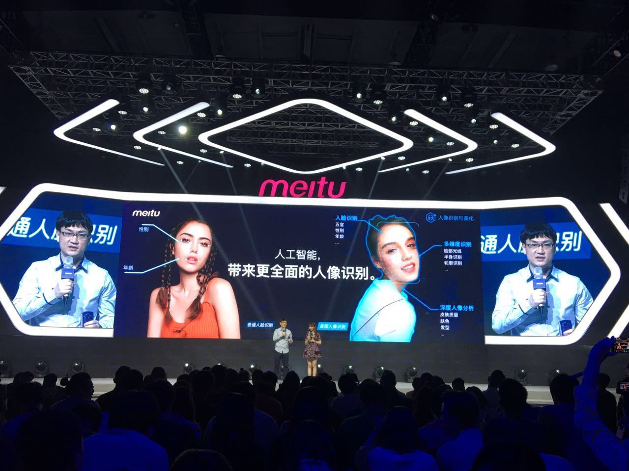 作为自拍神器,人工智能到底在这款手机中到得了怎样的应用?据美图CTO张伟介绍,这次人工智能技术主要被成功运用到人像识别美化和背景识别美化两大方面: