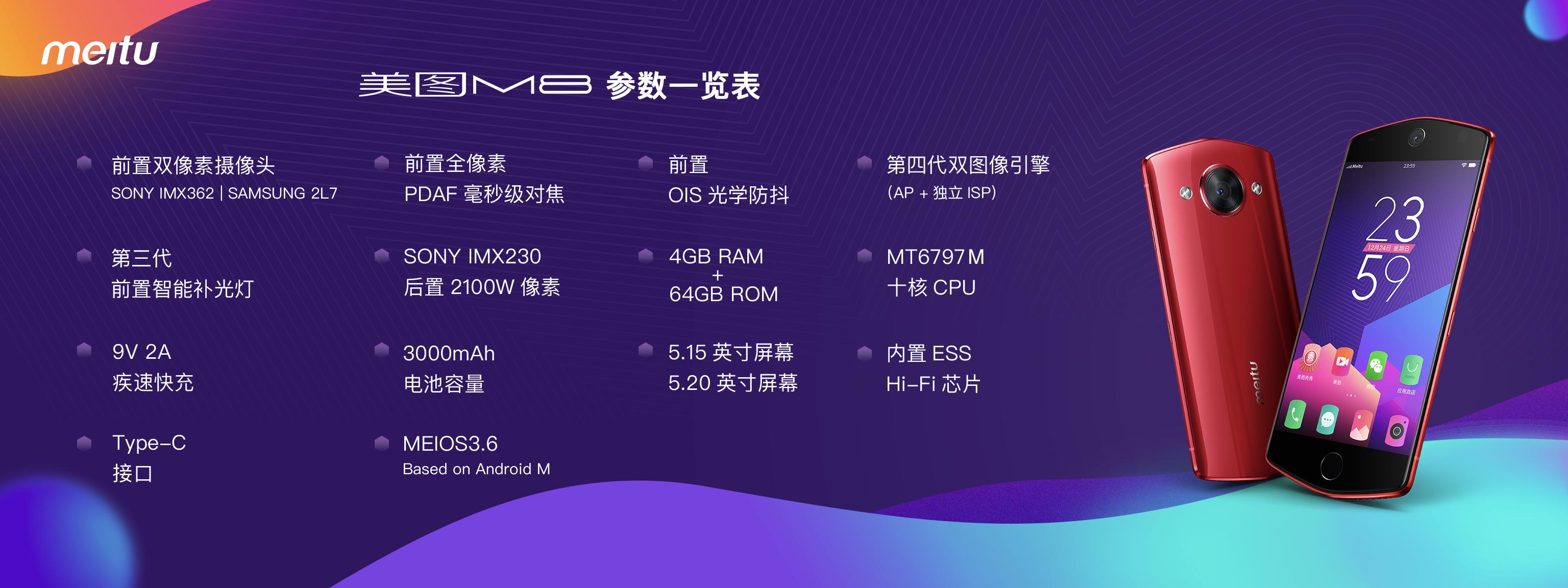 除了人工智能定制拍照这一最大的亮点外,在配置方面M8也有自己的特色。据吴欣鸿介绍,美图M8采用SONY IMX362前置双像素自拍镜头,可以带来更精准的对焦,成像更极速自拍画质更细腻。