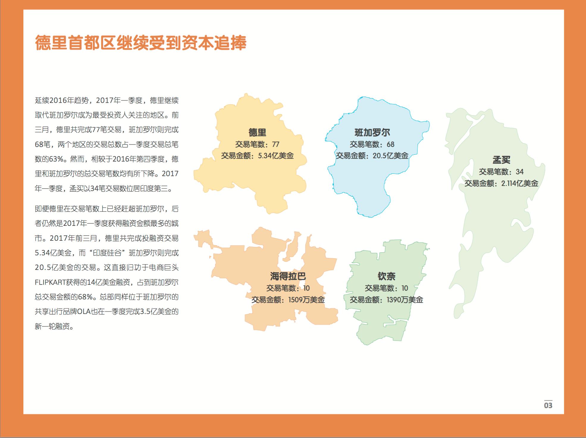 这直接归功于电商巨头 Flipkart获得的14亿美金融资,占到班加罗尔总交易金额的68%。总部同样位于班加罗尔的共享出行品牌Ola也在一季度完成3.5亿美金的新一轮融资。