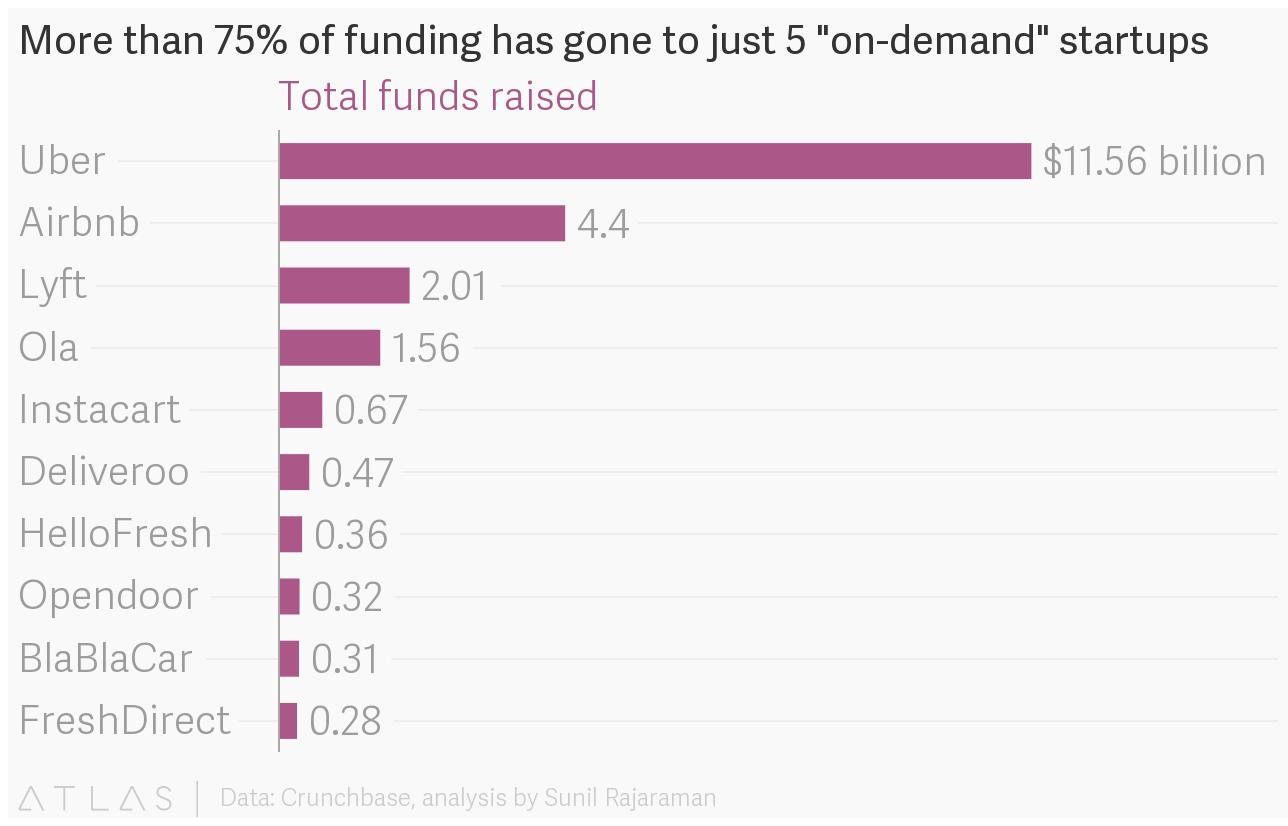但是,仅仅像Airbnb这类大公司在旅游行业取得成功并不意味着按需分发在其他的商品和服务领域不存在任何问题。除了拼车、住宿和外卖之外,大众市场对于按需使用的产品的反应更多地处于摇摆不定的状态(实际上,我们甚至不确定按需经济在技术上是否合法)。而相对于市场的不确定,风险投资正在大量涌入,并以补贴为基本手段。但是风险投资的加持不会使你的公司一路顺风,你只能依靠长期性融资为公司的盈利提供资金,而如今即使是Uber和Lyft也处于大量烧钱的模式中。