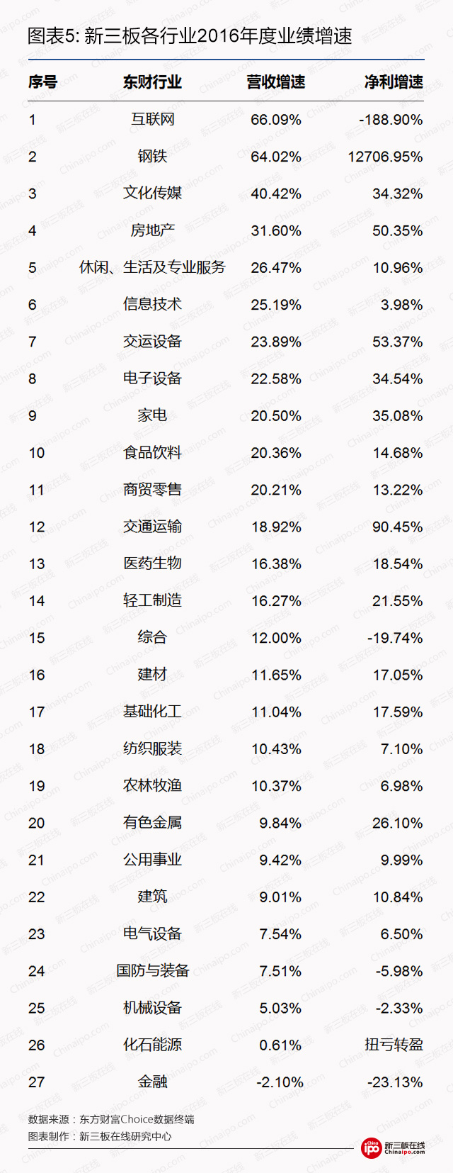 值得注意的是,2016年营收增速最高的互联网行业,整体净利却由盈转亏,净利下滑189%。